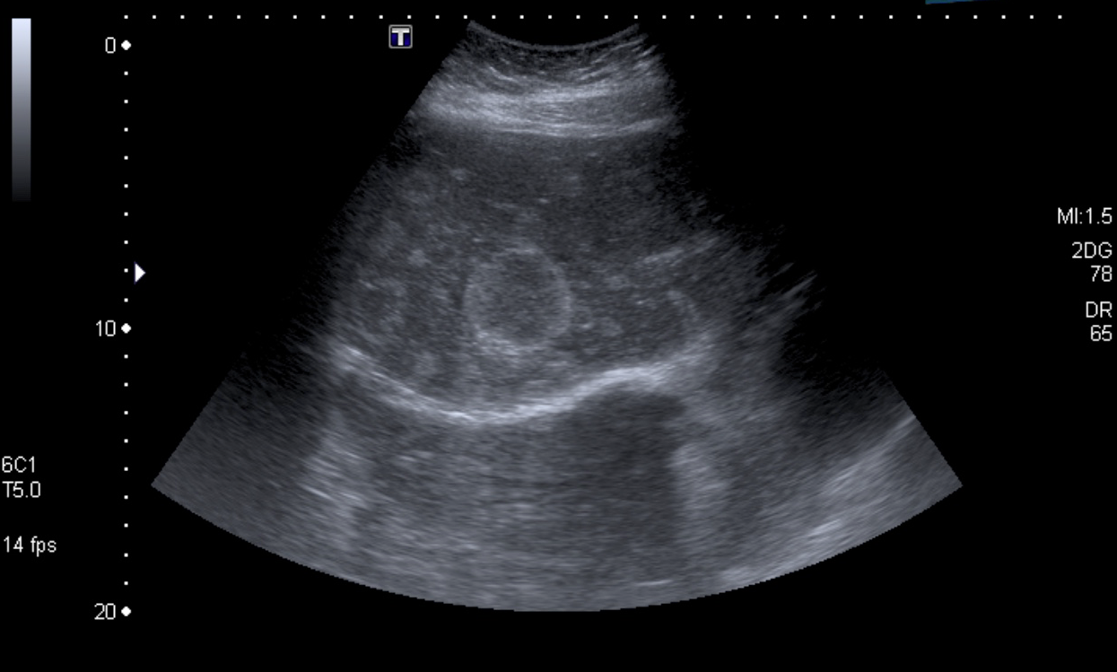 Cuadro clínico de 1 mes de evolución caracterizado por distensión abdominal e hiporexia.