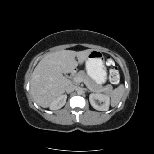 Paciente de 66 años con antecedente de pancreatitis, tomografía control.